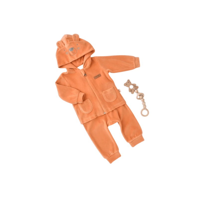 Set Ursulet cu bluzita si pantaloni lungi, Baby Cosy Set Ursulet cu bluzita si pantaloni lungi, Baby Cosy, portocaliu, marime 6-9 luni