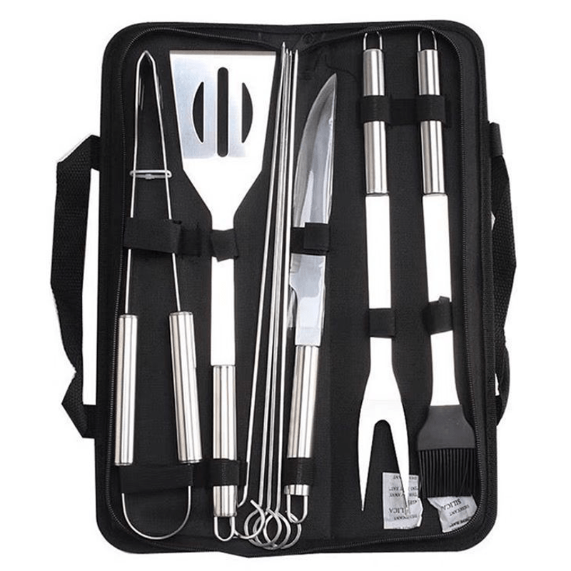 Set ustensile pentru gratar cu 9 accesorii otel inoxidabil Set ustensile pentru gratar cu 9 accesorii otel inoxidabil