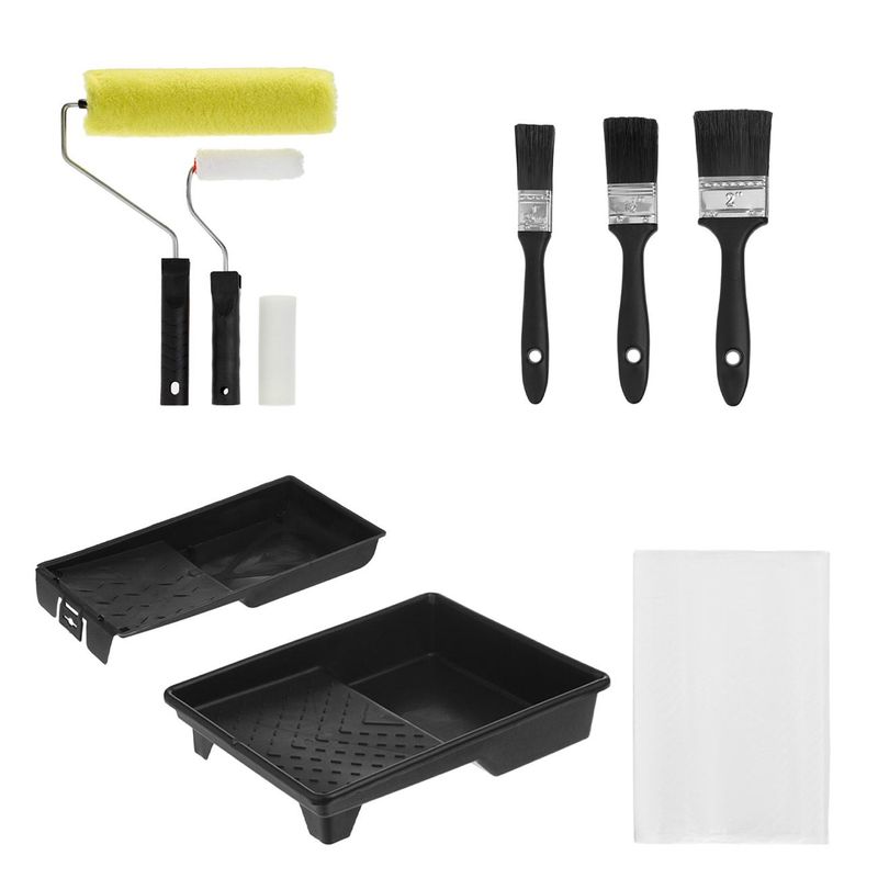 Set ustensile zugravit, 10 piese, tavite diverse dimensiuni, trafalete si pensule, folie acoperitoare, multicolor Set ustensile zugravit, 10 piese, tavite diverse dimensiuni, trafalete si pensule, folie acoperitoare, multicolor