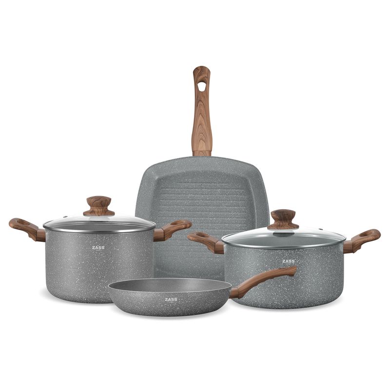 Set vase marmorate,antiaderente,din aluminiu turnat sub presiune Zass Gourmet ZG-ACS 05, gri Set vase marmorate,antiaderente,din aluminiu turnat sub presiune Zass Gourmet ZG-ACS 05, gri