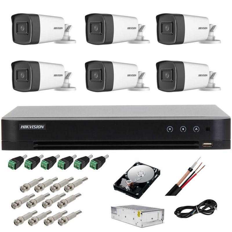 Sistemul de supraveghere Hikvision Turbo HD, echipat cu 6 camere bullet de 5 megapixeli, un DVR cu 8 canale si accesorii, este o solutie performanta pentru monitorizarea spatiilor rezidentiale sau comerciale. Camerele ofera imagini clare si detaliate datorita rezolutiei inalte, iar tehnologia Turbo HD asigura o transmisie video stabila si de calitate superioara.