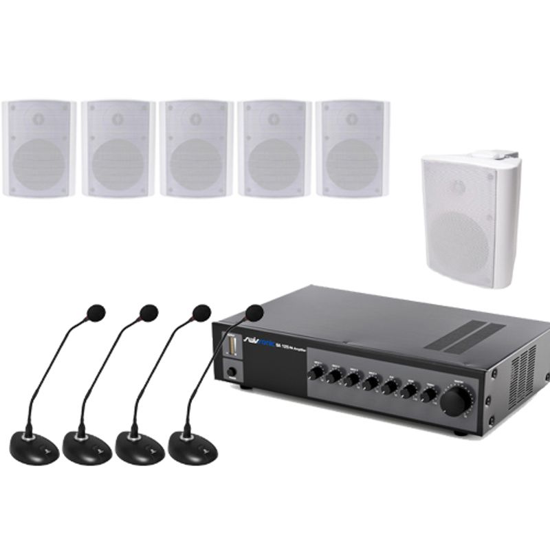 Sistem conferinta 4 microfoane cu fir, 6 boxe aplicate Sistem conferinta 4 microfoane cu fir, 6 boxe aplicate