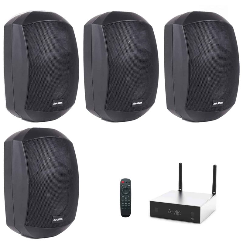 Sistem Sonorizare Cafenea format din 4 boxe aplicate negre Master Audio XB640B si amplificator wi-fi cu bluetooth Arylic A50+, 2x50W cu internet radio. Acest Sistem Audio hi-fi este configurat pentru terasa, cafenea, bar, cofetarii, restaurant,.. etc. Sistemul ofera un sunet superb si poate fi conectat cu alte Sisteme cu ajutorul aplicatiei 4STREAM prin wi-fi. Boxele sunt proiectate pentru frecvente extinse si au o dispersie spatiala datorita tehnologiei avansate.