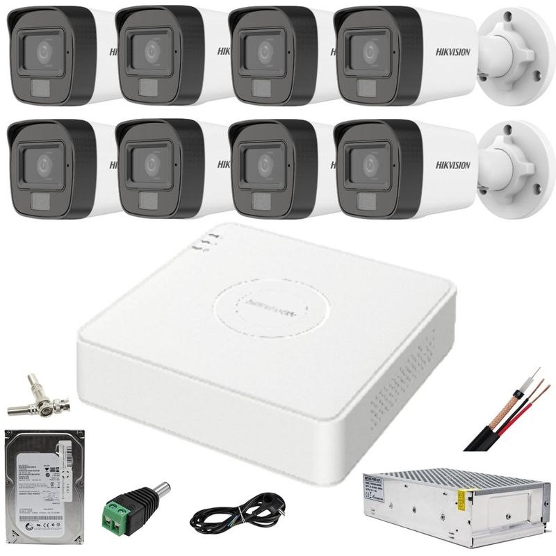 Kit de supraveghere Hikvision format din 8 camere de 5 Megapixeli, Dual Light WL 20 m IR 25 m, DVR 4 MegapixeliA