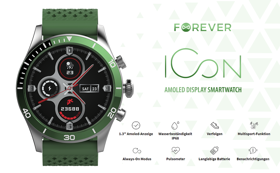 Smartwatch Amoled Display Forever ICON AW-100 culoare verde Smartwatch Amoled Display Forever ICON AW-100 culoare verde