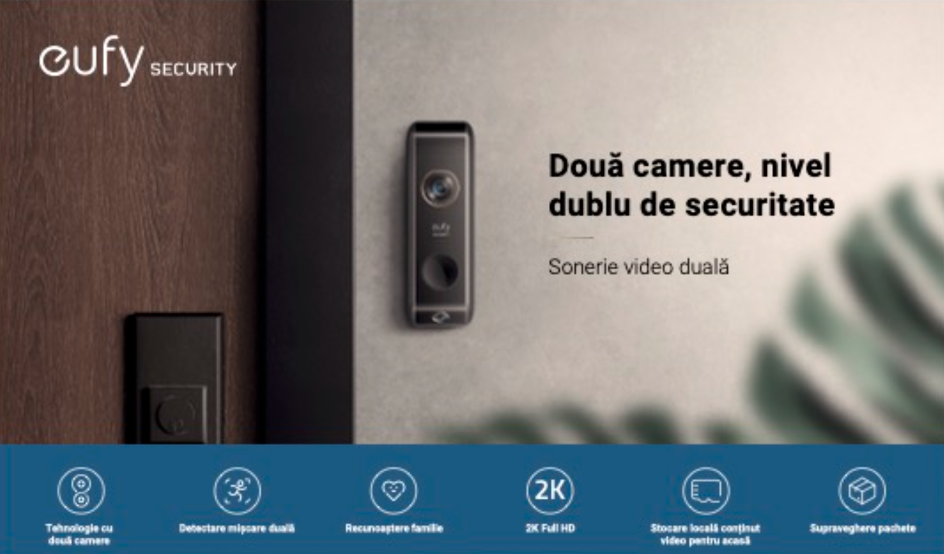 Pachetul contine DOAR soneria video eufy dual cameera wireless. Soneria necesita consola HomeBase 2 pentru a functiona (Homebase 2 nu este inclusa in pachet).