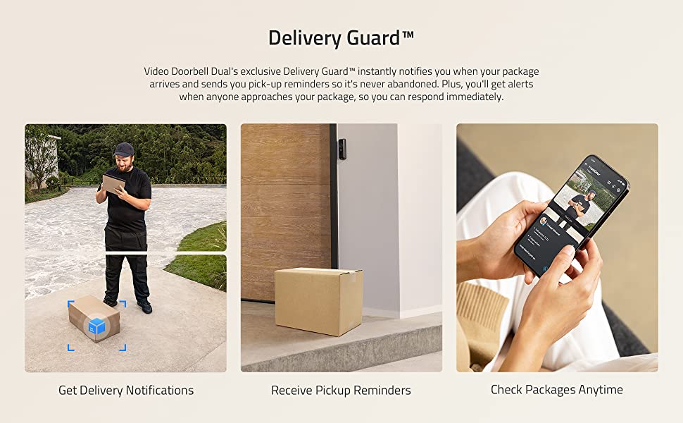 Senzorii de miscare PIR si radar avansati sunt capabili sa distinga atat subiectii apropiati cat si cei indepartati si reduc cu 95% alarmele false. Primiti pe telefon o notificare instanta cand soseste pachetul dvs. cu Delivery Guard. In plus, veti primi mementouri si alerte de ridicare daca cineva se apropie de pachetul dvs din fata usii.