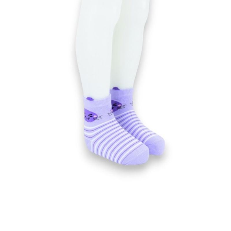 Sosete bumbac scurte colorate cu diverse modele cu pisica pentru copii, mov 2-3 ani Sosete bumbac scurte colorate cu diverse modele cu pisica pentru copii, mov 2-3 ani