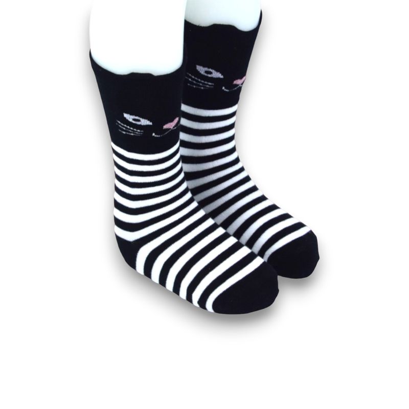 Sosete lungi cu dungulite si pisici pentru copii, negru 8-9 ani Sosete lungi cu dungulite si pisici pentru copii, negru 8-9 ani