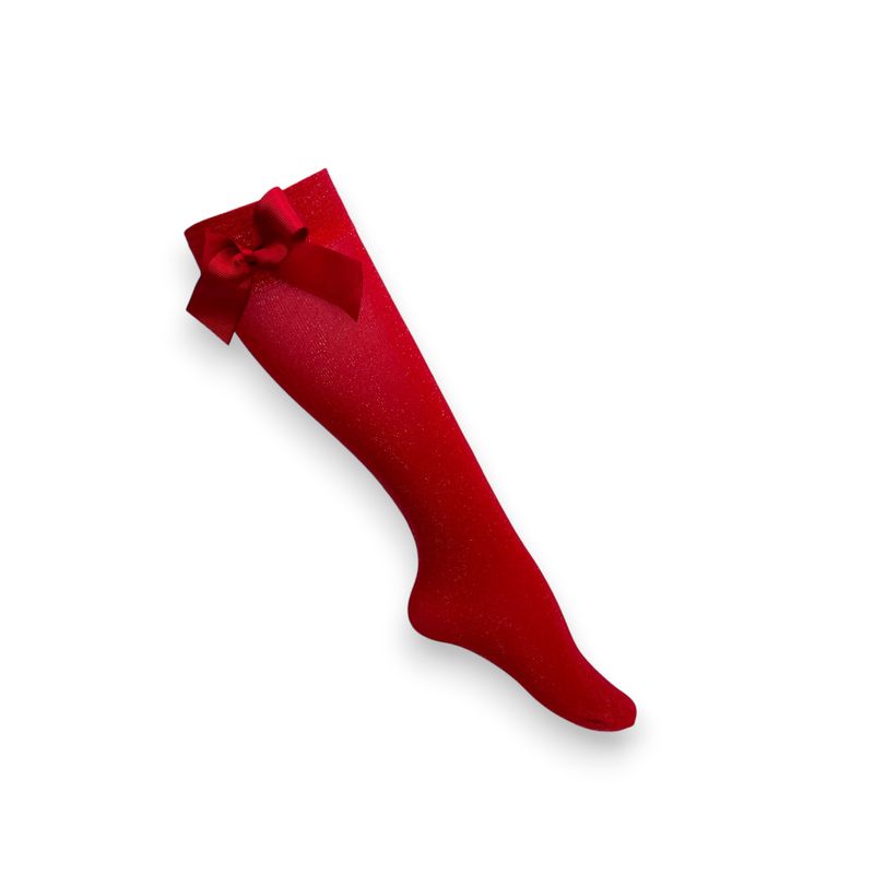 Sosete lungi cu fundite si fir metalizat pentru adulti, rosu one size Sosete lungi cu fundite si fir metalizat pentru adulti, rosu one size