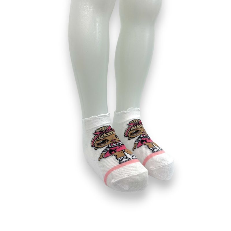 Sosete scurte cu model papusa pentru copii, alb 6-7 ani Sosete scurte cu model papusa pentru copii, alb 6-7 ani