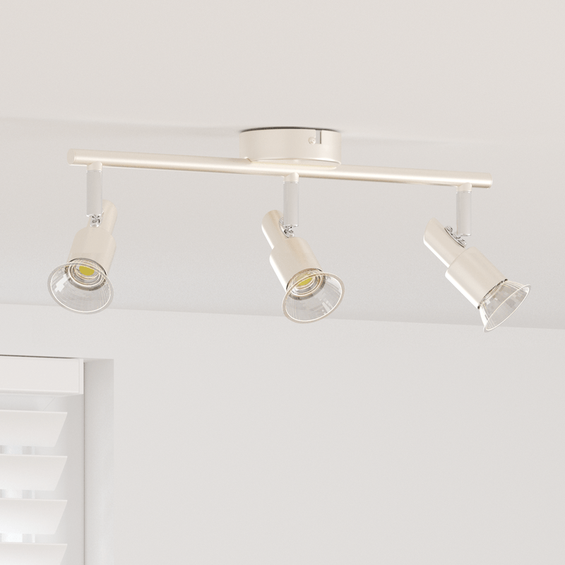 Acest stylish spotlight pentru tavan ofera iluminare moderna, fiind ideal pentru a lumina diverse spatii interioare, cum ar fi sufragerii, birouri si bucatarii. Cele trei capete ajustabile iti permit sa indrepti lumina exact unde vrei, creand o atmosfera calda si practica.