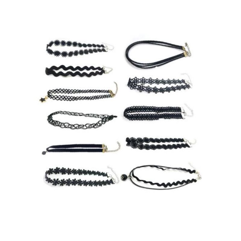 Set 11 colier choker elegant, stiluri multiple, negru Set 11 colier choker elegant, stiluri multiple, negru