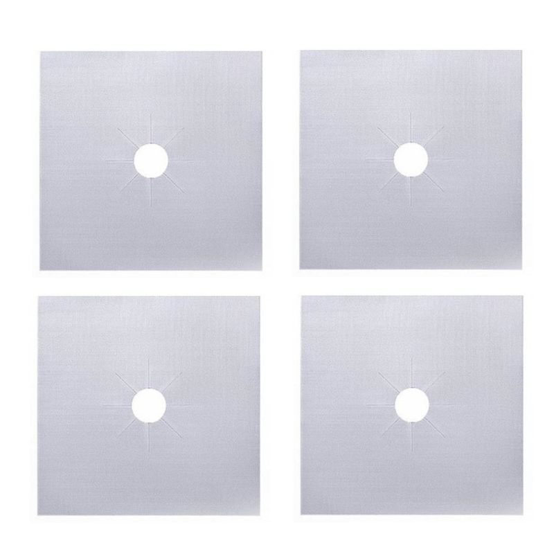 Set 4 folii protectie aragaz, PARAFASA, Fibra de sticla/PTFE, Termorezistent, 27x27 cm, Argintiu Set 4 folii protectie aragaz, PARAFASA, Fibra de sticla/PTFE, Termorezistent, 27x27 cm, Argintiu