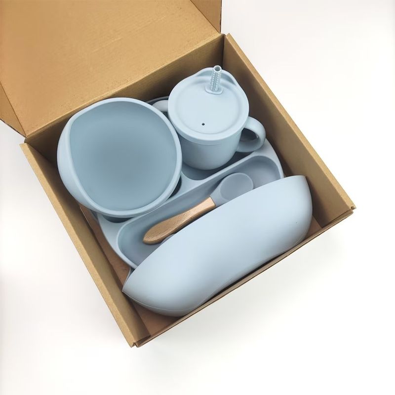 Set Diversificare din silicon, bavetica, farfurie, pahar 2 in 1, bol ventuza, lingurita, furculita, pai, fara Set Diversificare din silicon, bavetica, farfurie, pahar 2 in 1, bol ventuza, lingurita, furculita, pai, fara