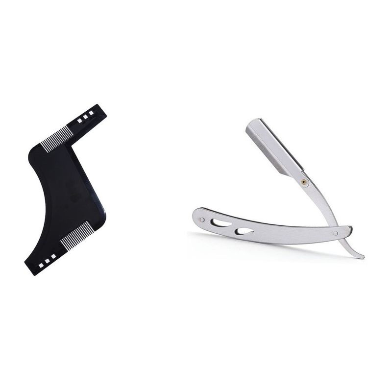 Ingrijire personala si CosmeticeIngrijire personalaIngrijire parPerii de par si piepteniSet profesional pieptene / sablon contur barba & mustata + Brici profesional pentru barbierit si ras capilar,