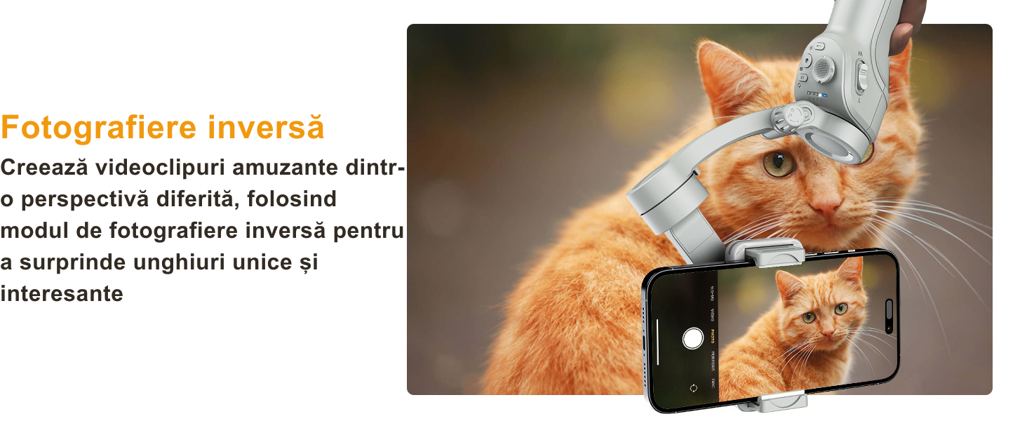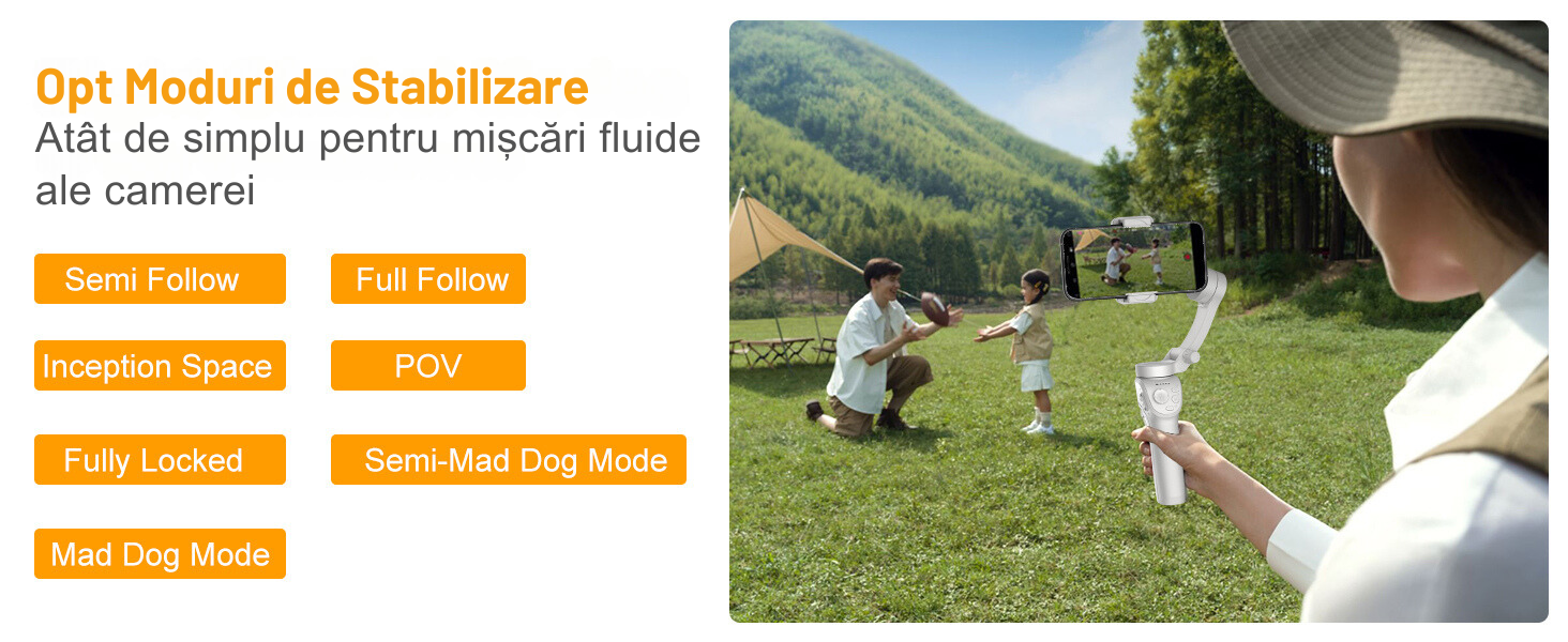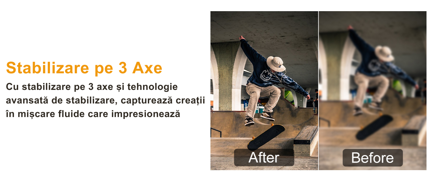 - Stabilizare pe 3 axe pentru filmari line: Bucura-te de filmari perfect stabilizate chiar si in miscare. Adio imagini neclare si tremuratoare, bun venit videoclipuri super fluide!