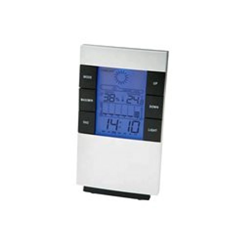 Statie meteo, afisaj LCD, alimentare baterii, plastic, argintiu, 14x8x4 cm Statie meteo, afisaj LCD, alimentare baterii, plastic, argintiu, 14x8x4 cm