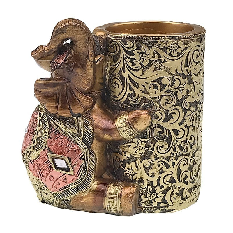Statueta decorativa in forma de elefant cu suport pentru pixuri, Auriu, 11 cm, 1105H Statueta decorativa in forma de elefant cu suport pentru pixuri, Auriu, 11 cm, 1105H