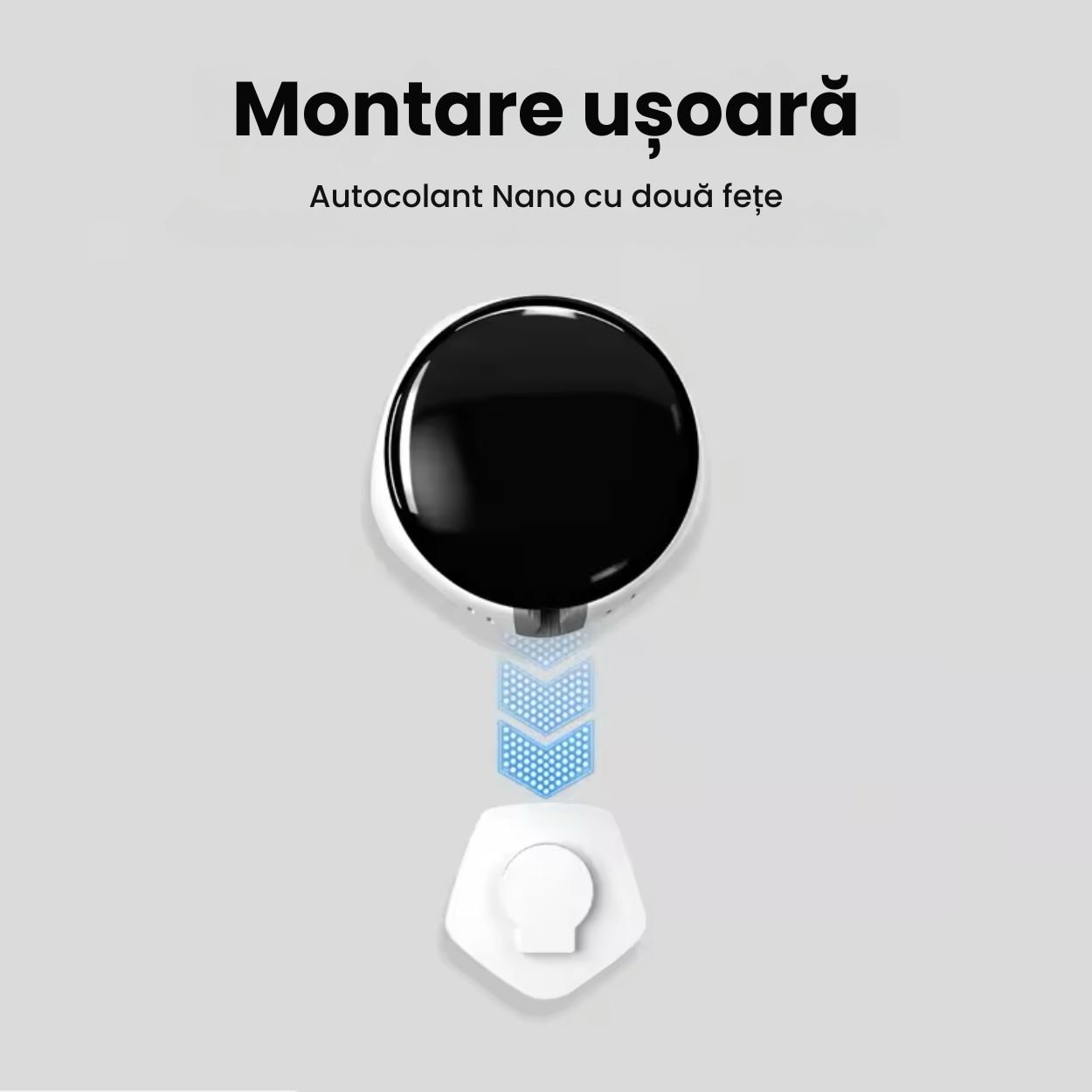 Dispozitivul se monteaza cu usurinta pe orice suprafata plana, utilizand un autocolant nano cu doua fete, care garanteaza o fixare stabila si discreta, fara a afecta suprafetele. In plus, datorita designului sau ingenios, dispozitivul poate fi detasat cu usurinta din suportul de montare, oferindu-ti flexibilitatea de a-l transporta si utiliza in diferite locatii, astfel incat sa il poti folosi oriunde ai nevoie de igiena suplimentara a periutelor de dinti.