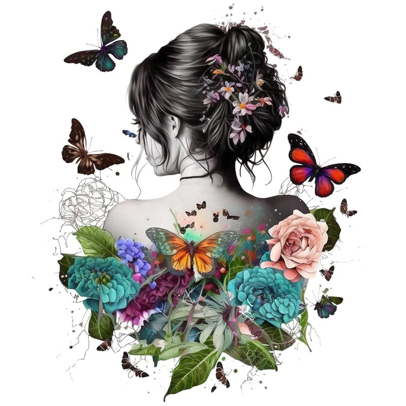 Sticker decorativ, Fata, Fluturi si Flori, Gri, 70 cm, 1208STK Sticker decorativ, Fata, Fluturi si Flori, Gri, 70 cm, 1208STK
