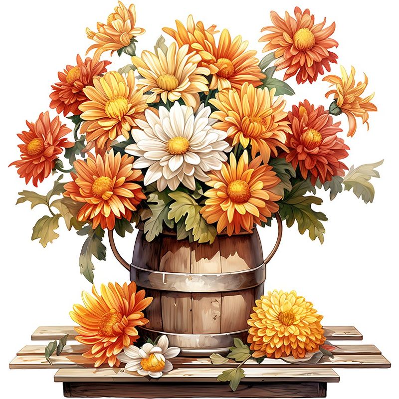 Sticker decorativ, Flori Crizanteme, Portocaliu, 62 cm, 1363STK-8 Sticker decorativ, Flori Crizanteme, Portocaliu, 62 cm, 1363STK-8