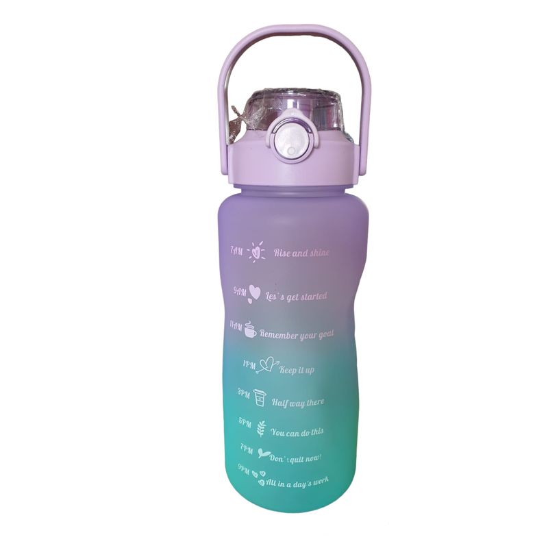 Descopera sticla portabila motivationala de 2L, creata special pentru a-ti face viata mai usoara si mai motivanta in fiecare zi! Fabricata dintr-un amestec inovator de plastic si Tritan, aceasta sticla este partenerul ideal pentru sala de fitness, parcuri, scoala si calatorii.