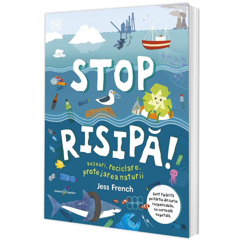 Ghidul noii generatii de ecologisti impotriva risipei de zi cu zi Acest volum captivant si extrem de bine documentat, tiparit cu cerneala vegetala pe hartie din surse responsabile, functioneaza ca un ghid de salvare a planetei prin constientizarea si prevenirea risipei de zi cu zi. Copiii invata care sunt problemele arzatoare cu care se confrunta planeta noastra, dar si cum se pot implica concret. Mai putina risipa inseamna mai putine deseuri, iar gunoiul deja existent poate fi transformat, cu un strop de inventivitate, intr-o adevarata comoara. In Stop risipa!, Jess French isi asuma misiunea curajoasa de a expune fara menajamente multe dintre realitatile dure cu care ne confruntam astazi. In ceea ce priveste poluarea, defrisarile, risipa resurselor naturale, acumularea si gestionarea deseurilor. Datele pe care le furnizeaza sunt de-a dreptul alarmante! - Daca ar fi incarcat in camioane, gunoiul aruncat an de an ar fi suficient cat sa umple un convoi de astfel de camioane care sa inconjoare planeta de 24 de ori. - 91% din tot plasticul fabricat pana in prezent nu a fost inca reciclat. - Dintr-un robinet deschis, curg in fiecare minut pana la 12 litri de apa. - In fiecare zi, se arunca pana la 60 de milioane de recipiente de plastic de unica folosinta. - 45% din productia planetara de fructe si legume ajunge la cos. - O data pe an, imensa Statie Spatiala Internationala (SSI) trebuie redirectionata din calea deseurilor generate de activitatile omului in cosmos. - Continuand in acelasi ritm de consum si risipa, in 30 de ani vom genera cu 70% mai multe deseuri decat astazi. Acestea sunt numai cateva dintre statisticile de impact pe care Jess French le prezinta copiilor. Din fericire, exista solutii simple pentru multe dintre problemele legate de deseuri. Iar cu ajutorul acestei carti, cei mici vor descoperi cum se pot implica pentru a face posibila schimbarea de care are nevoie lumea in care traim. Aflata pe mainile cetatenilor responsabili si bine informati, planeta are toate sansele de a deveni un loc mai placut si mai curat, mai sigur si mai sanatos pentru toate speciile de plante si de animale. Stop risipa! educa, astfel, noua generatie in spiritul respectului pentru mediu. Totodata, face apel la empatie, dedicare si imaginatie, calitatile nelipsite ale celor care aleg sa integreze reciclarea si protejarea planetei in stilul lor de viata. Textele sunt organizate in paragrafe cu forta persuasiva, usor de inteles, iar fotografiile si ilustratiile imbinate in colaje completeaza in mod creativ acest ghid fascinant si extrem de util. CUPRINS Introducere Problema de s eurilor Despre poluare Poluarea aerului Resursele planetei Atmosfera planetei Defri sa rile Protejarea planetei Energia regenerabil a Casa eficient a energetic De s eurile menajere Unde se duce totul? Groapa de gunoi Plastic pentru totdeauna Plasticul de unic a folosin ta M a rile strig a dup a ajutor! Cur at area oceanelor Cei 3R Nout at i despre reciclare ........ Cod produs 978-606-796-174-4 Greutate 0.5900 Autor(i): Jess French, Colectia : Micul ecologist, Editura :Galaxia Copiilor Data aparitiei 29 sept. 2022 Traducator(i): Karina Han Ilustrator(i): Sadie Thomas Nr. de pagini :72 Format :13 x 20 cm Coperta :Flexibila Legatorie :Brosata Interior Policromie