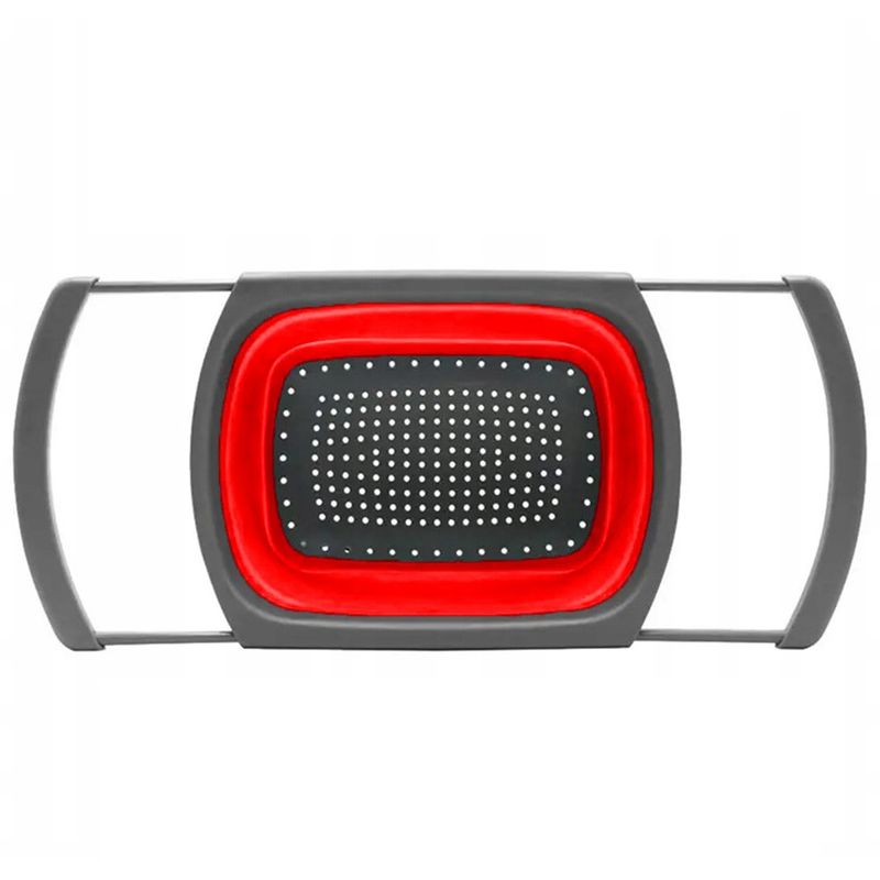 Strecuratoare din silicon, extensibila si pliabila, 33-60 cm, rosu/gri Strecuratoare din silicon, extensibila si pliabila, 33-60 cm, rosu/gri