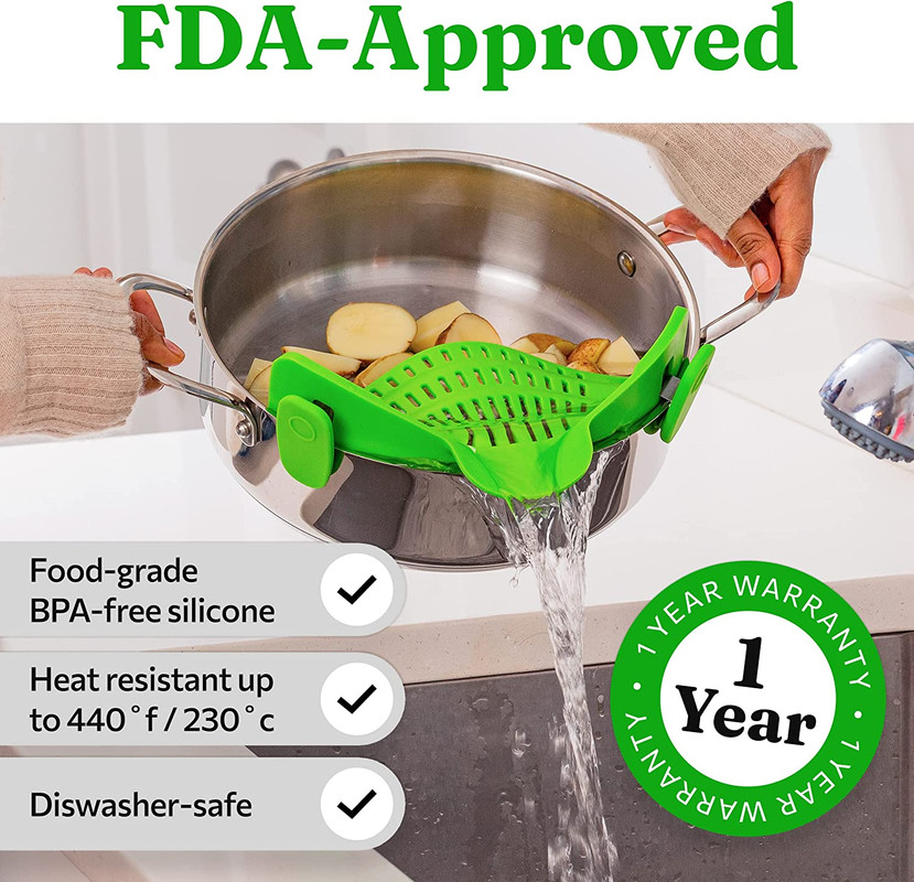 [Silicon moale si rezistent la caldura] Strecuratorile noastre din silicon cu fixare sunt fabricate din silicon sigur si non-toxic, 100% calitate alimentara. Complet fara BPA, non-toxice. Strecuratoarea alimentara din silicon este rezistenta la caldura si poate rezista la temperaturi de 230 ℃ fara a se rupe, arde sau topi in acest timp.