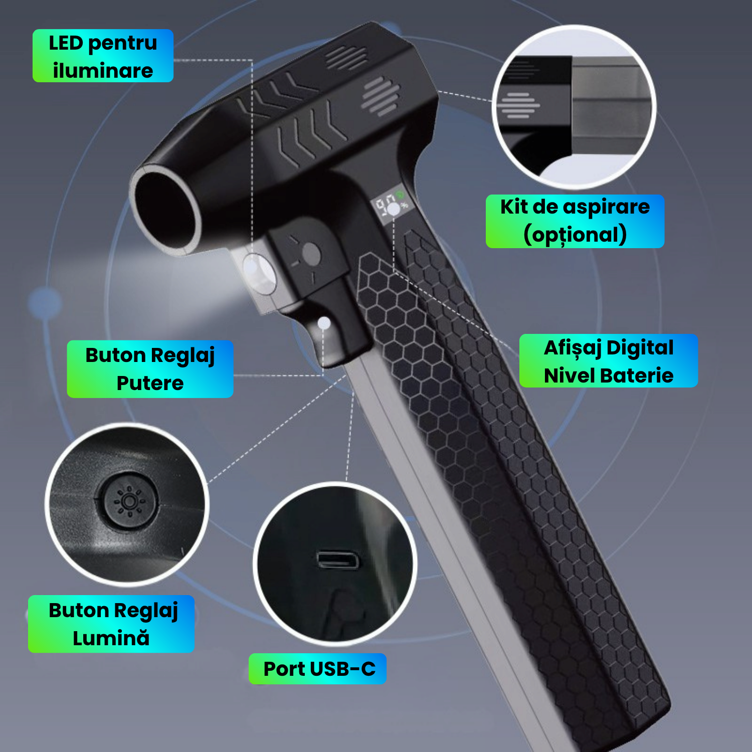 Suflanta Aer Portabila 4 in 1 JustNet®, Aspiratie, LED, Powerbank 10000mAh, 900g Putere, Brushless, Curatare PC, Masinal Suflanta Aer Portabila 4 in 1 JustNet®, Aspiratie, LED, Powerbank 10000mAh, 900g Putere, Brushless, Curatare PC, Masinal