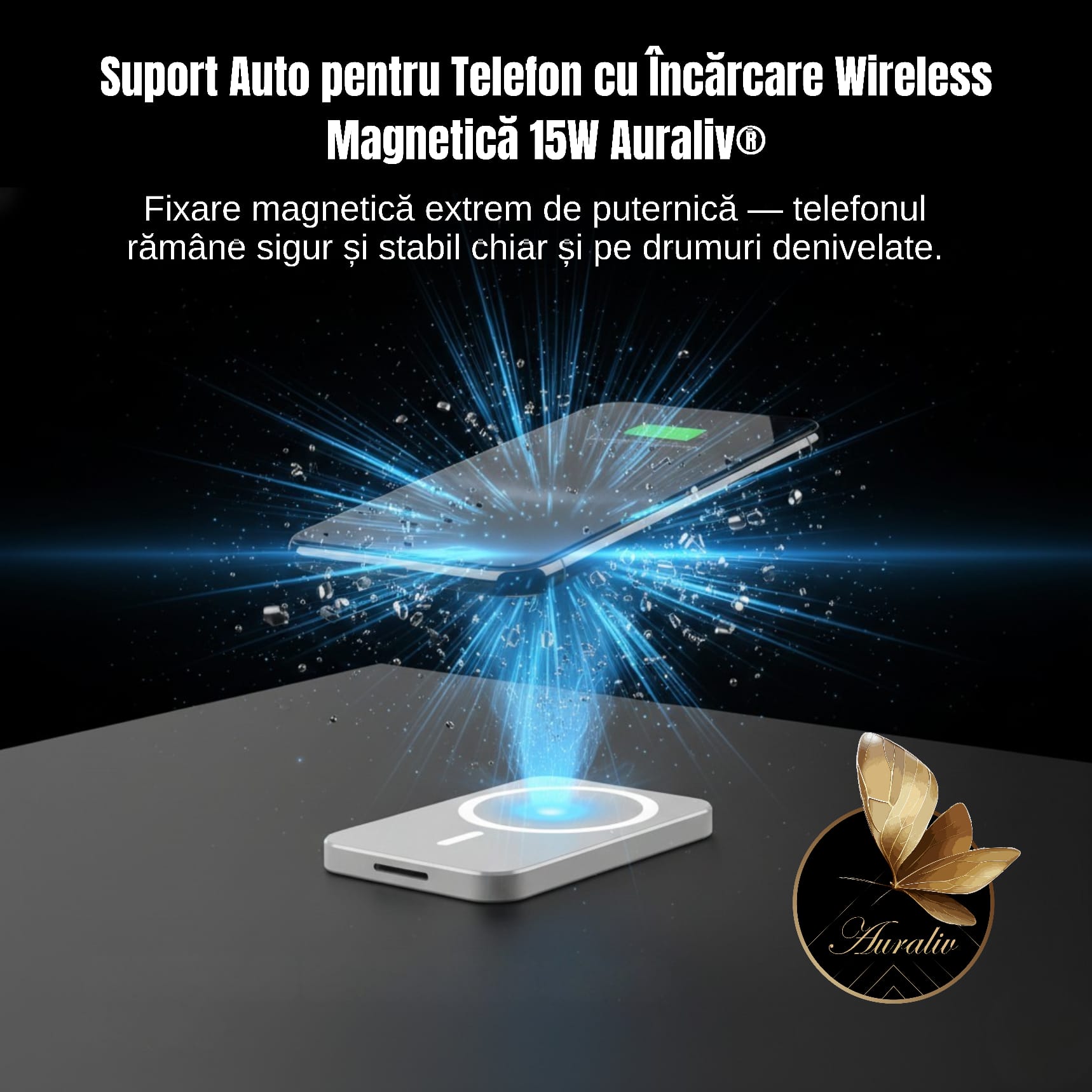 Suport Auto Magnetic Wireless AURALIV, 15W, Rotire 360, Culoare Alb Suport Auto Magnetic Wireless AURALIV, 15W, Rotire 360, Culoare Alb