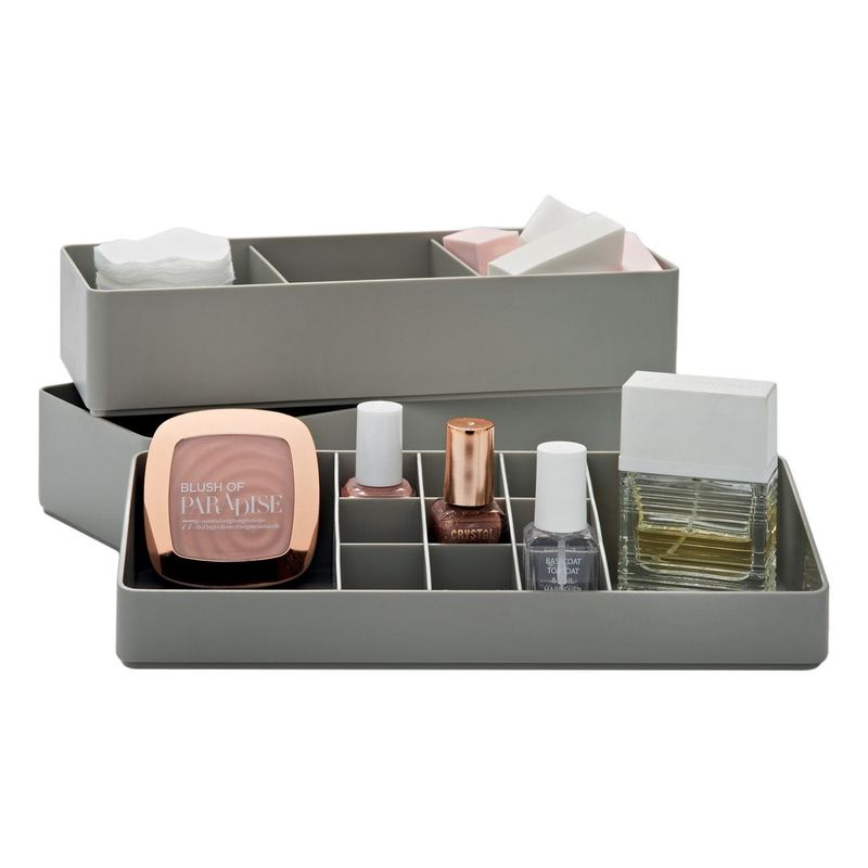 Ingrijire personala si CosmeticeMachiajPortfarduri si genti cosmeticeSuport cosmetice, model 3 nivele, plastic, culoare gri, dimensiuni 25.5 x 10.2 x 15cm