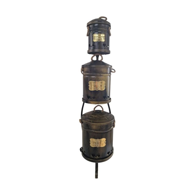 Suport cu 3 cosuri cu capac metallic multifunctional, Ø29xh92 cm - Alama antichizata Suport cu 3 cosuri cu capac metallic multifunctional, Ø29xh92 cm - Alama antichizata
