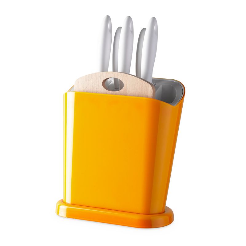 Caracteristici 5 cutite si 1 masa de taiat si 2 buzunare laterale practice intr-o incapere extrem de COMPACTA si datorita fondului Anti-alunecare iti vei putea tine ustensilele de bucatarie., usor,
