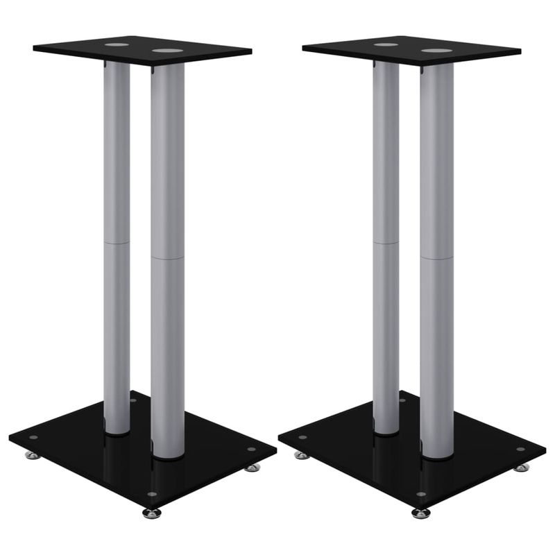 Suport difuzor 2 buc, negru/argintiu sticla securizata 2 stalpi Suport difuzor 2 buc, negru/argintiu sticla securizata 2 stalpi