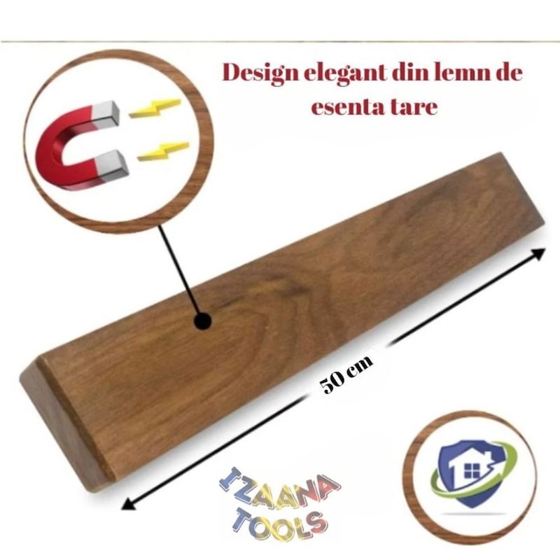 Suport magnetic pentru cutite, IZAANA TOOLS®, lemn de salcam, prindere puternica Suport magnetic pentru cutite, IZAANA TOOLS®, lemn de salcam, prindere puternica