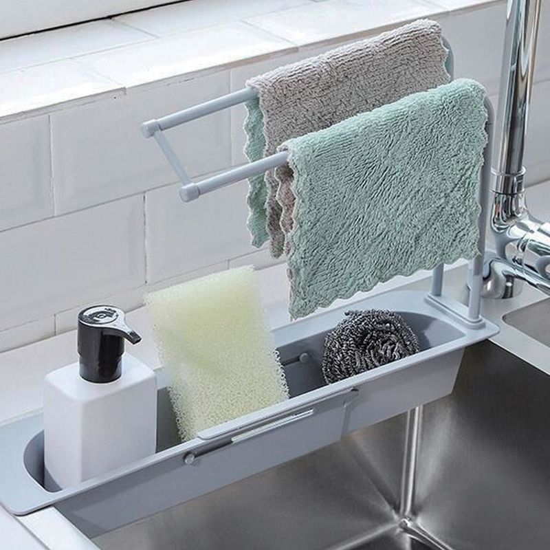 Cu Suportul Organizator Extensibil Gri pentru Chiuveta, bucataria ta devine un loc mai curat si mai organizat, oferindu-ti confort si eficienta in fiecare zi. Integreaza-l cu usurinta si bucura-te de un spatiu ordonat si stilat!