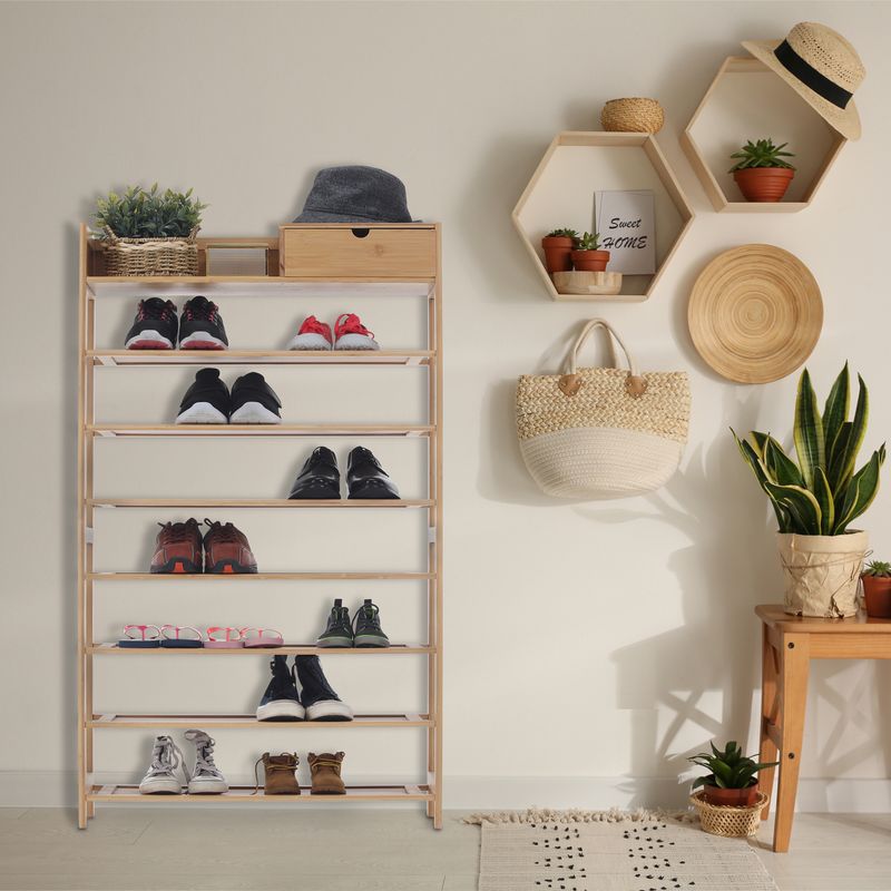 Suport pentru pantofi, 7 polite, bambus, KATLEY Suport pentru pantofi, 7 polite, bambus, KATLEY
