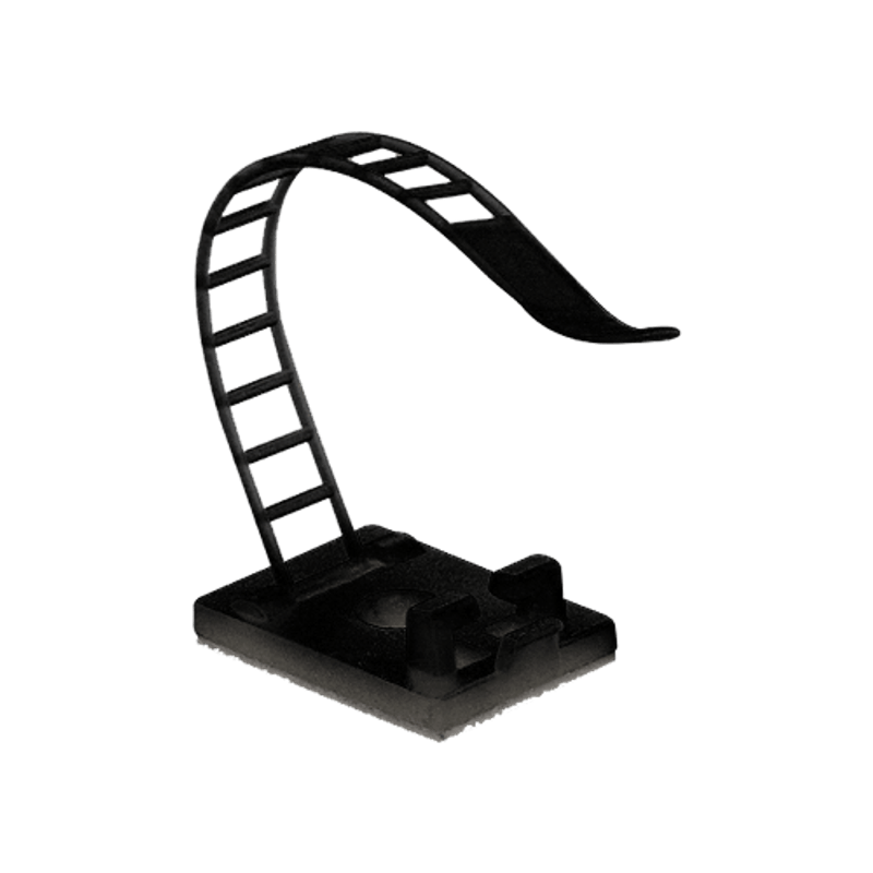 Suport ajustabil din plastic pentru prindere cabluri, fixare cu adeziv sau surub autoforant.