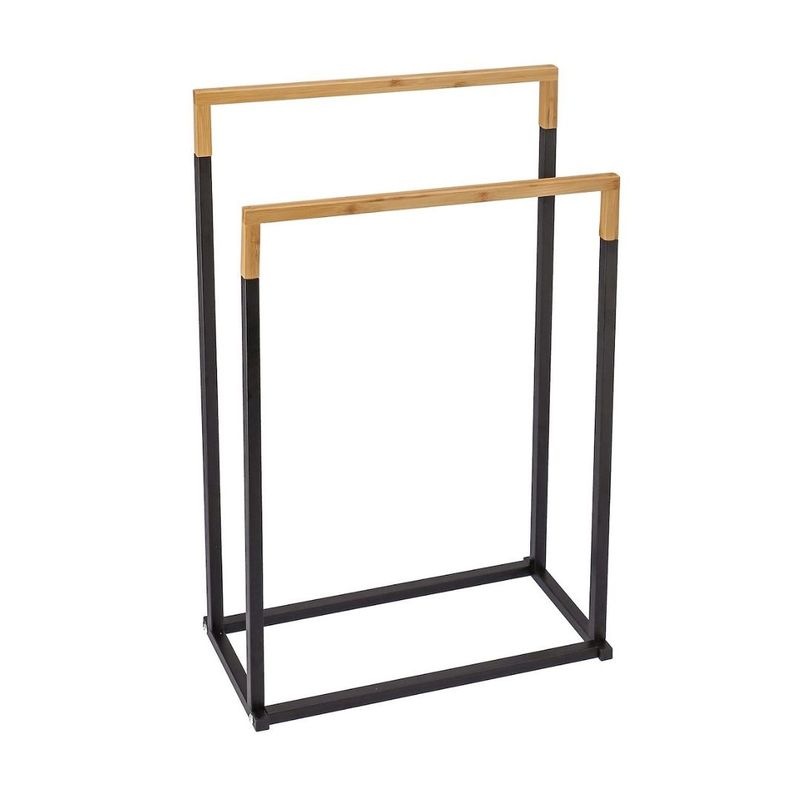 Suport prosoape Jumi, pe doua randuri, metal si bambus, negru si maro, 76x45x22 cm Suport prosoape Jumi, pe doua randuri, metal si bambus, negru si maro, 76x45x22 cm