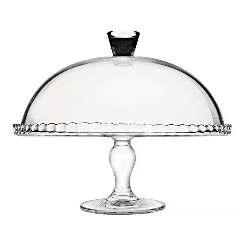 Suport pentru tort, din sticla, ideal pentru servirea desertului preferat intr-un mod elegant, cu bun gust. Cu un design clasic, foarte practic datorita capacului, acesta este si simplu de curatat, putand fi introdus in masina de spalat vase.