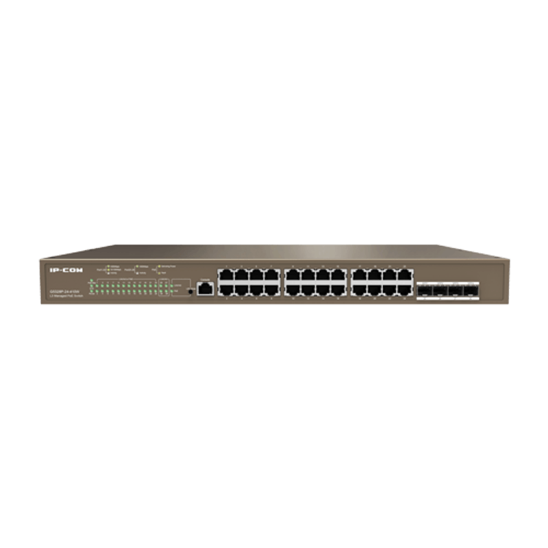 Switch 24 porturi PoE Gigabit, 4 porturi SFP Gigabit, 1 port consola,1U , L3 Management - IP-COM G5328P-24-410W Switch 24 porturi PoE Gigabit, 4 porturi SFP Gigabit, 1 port consola,1U , L3 Management - IP-COM G5328P-24-410W
