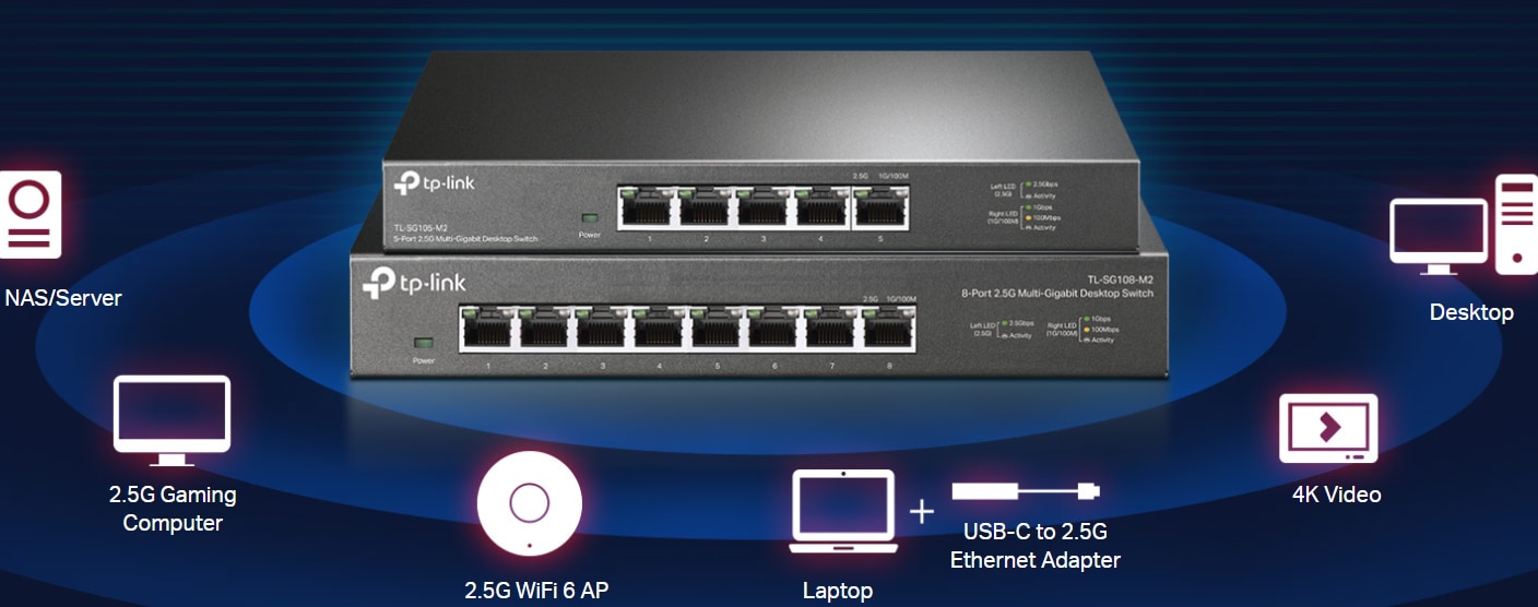 Switch TP-Link TL-SG108-M2, 8 porturi x 2.5 Gigabit, carcasa metalica Switch TP-Link TL-SG108-M2, 8 porturi x 2.5 Gigabit, carcasa metalica