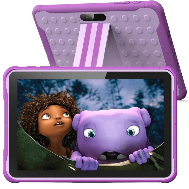 [Tableta durabila cu carcasa si suport] - Designul all-in-one (carcasa din silicon de calitate alimentara) si suportul ofera protectie si sprijin, mentinand tableta K10 usoara si compacta, ceea ce o face mai potrivita pentru copii. Carcasa reduce riscul de deteriorare a tabletei si mentine portabilitatea. Suportul din spatele tabletei permite copiilor sa urmareasca videoclipuri sau sa faca apeluri video fara a folosi mainile. (Potrivita pentru copii de la 3 ani in sus)