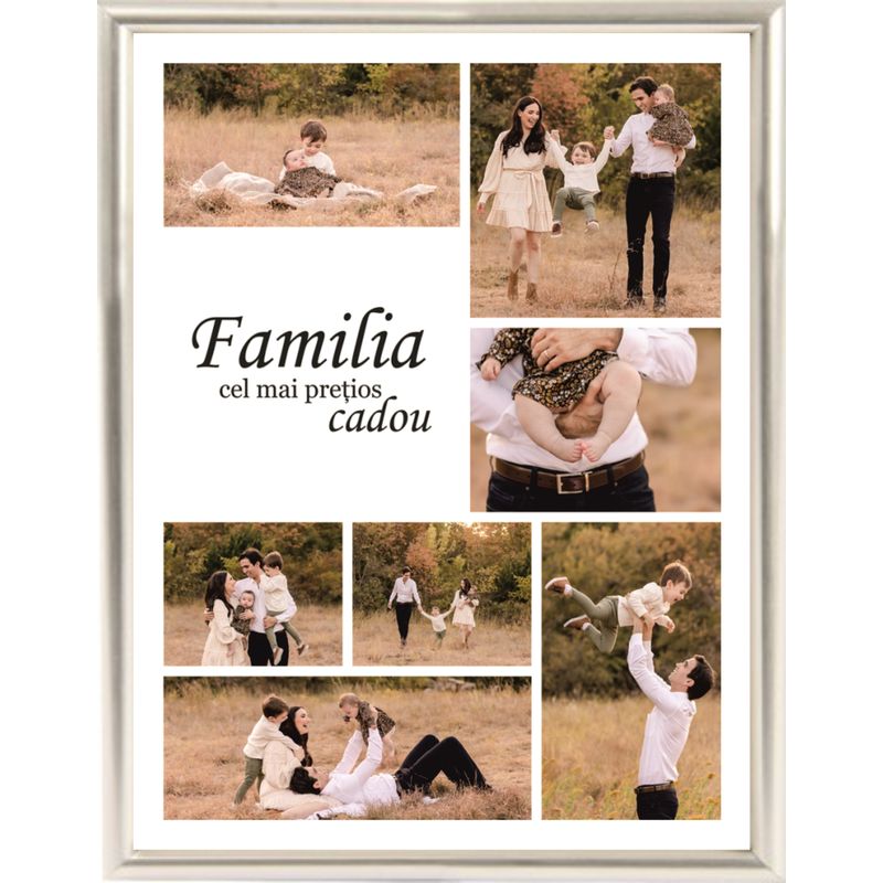 Aceste tablouri de tip colaj AU RAMA aparenta (clasica), va amintim ca tot ce vedeti se poate personaliza in proportie de 90% cu exceptia incadrarii pozelor, adica: