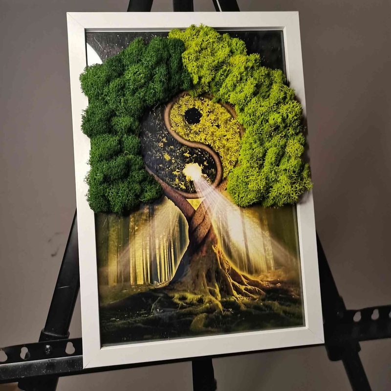 Tablou cu licheni naturali, stabilizati "Copac Yin-Yang" Tablou cu licheni naturali, stabilizati "Copac Yin-Yang"