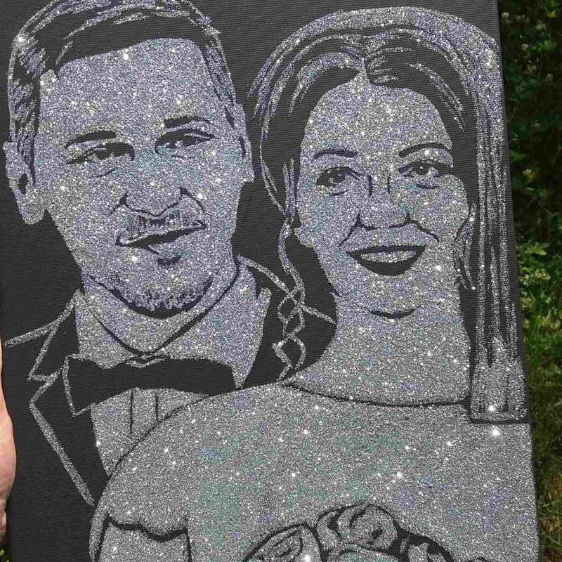 Tablou cu sclipici argintiu, pictat manual dupa poza ta, 30x40 cm, 2 persoane Tablou cu sclipici argintiu, pictat manual dupa poza ta, 30x40 cm, 2 persoane