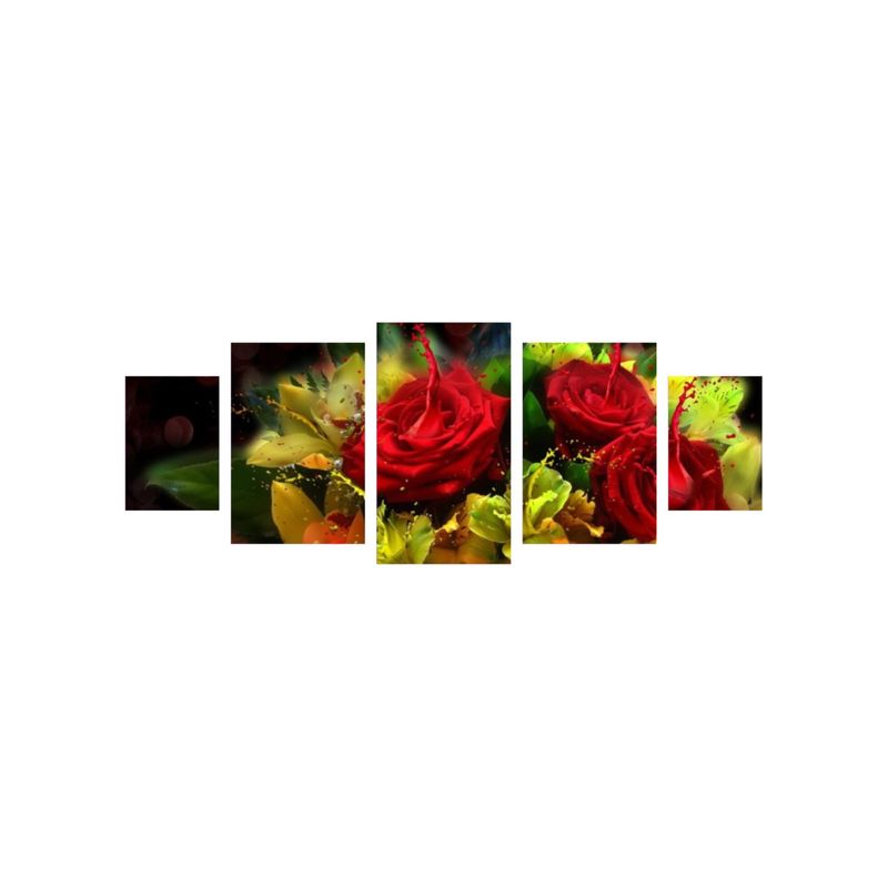 Tablou multicanvas 5 piese Buchetul cu trandafiri, 220x90 cm Tablou multicanvas 5 piese Buchetul cu trandafiri, 220x90 cm
