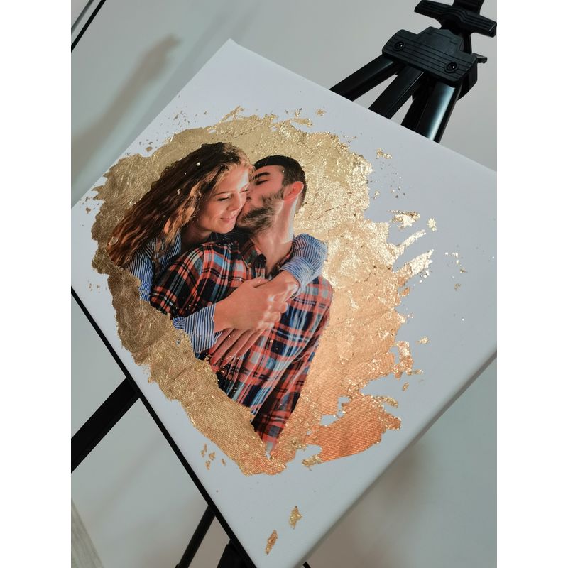 Tablou personalizat cu foita de aur si poza ta, fundal alb Tablou personalizat cu foita de aur si poza ta, fundal alb, 50x70 cm